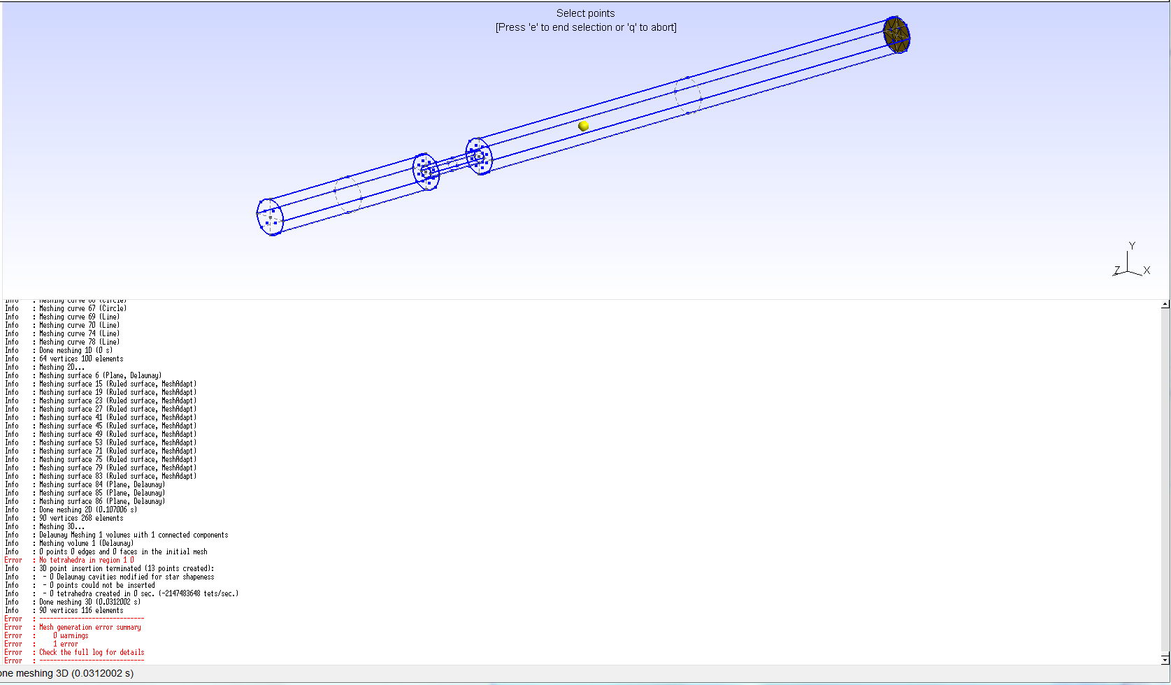 I'm trying to generate a constricted pipe geometry and mesh via Gmsh. It